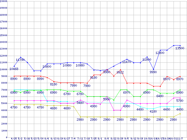 | ※製品名をクリックすると個別のグラフを表示します ※点線部は販売店が確認できなかった、または調査データがないことを示します | |