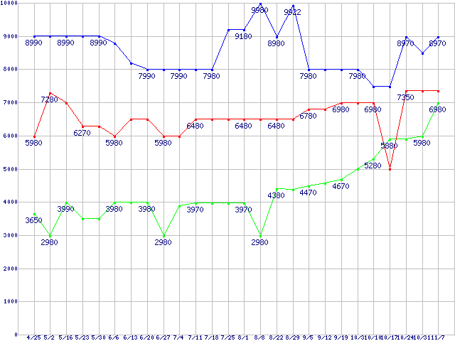| ※製品名をクリックすると個別のグラフを表示します ※点線部は販売店が確認できなかった、または調査データがないことを示します | |