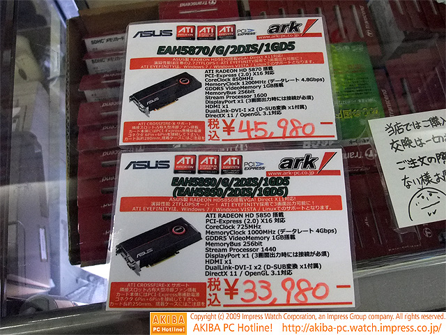 AKIBA PC Hotline! 2009年11月7日号今週見つけた新製品:ビデオカード ASUS EAH5870/G/2DIS/1GD5 ASUS EAH5850/G/2DIS/1GD5前の画像←[記事に戻る]