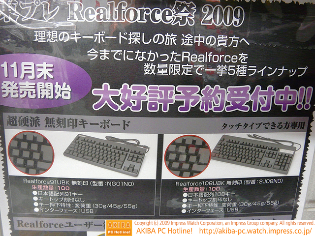 Realforce限定版が展示開始、予約限定?