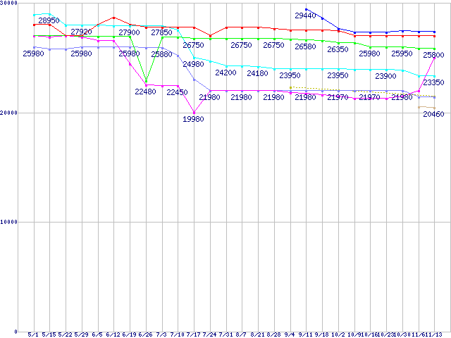 | CPU主要製品(最安値2万円〜3万円未満)の最安値推移 |