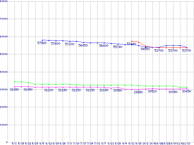 | CPU主要製品(最安値3万円〜6万円未満)の最安値推移 |