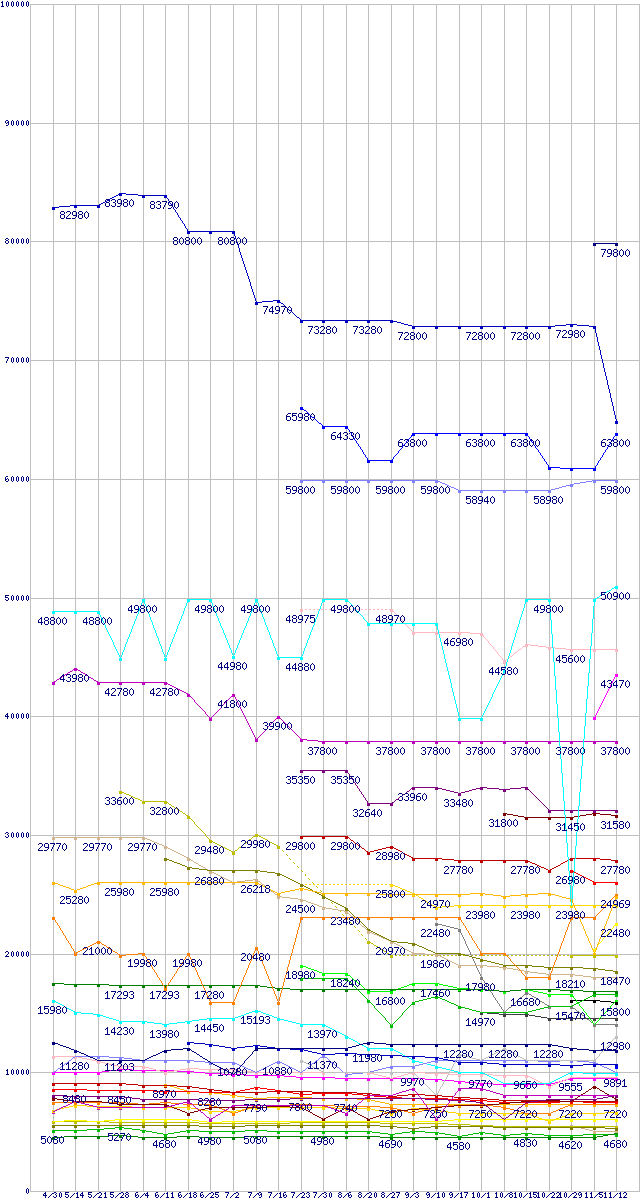 HDD/SSD主要製品の最安値推移