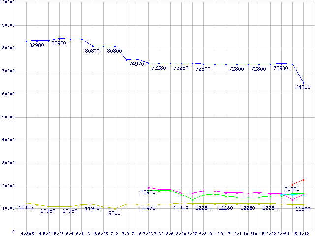 | HDD/SSD 60GB〜80GB未満の最安値推移 |