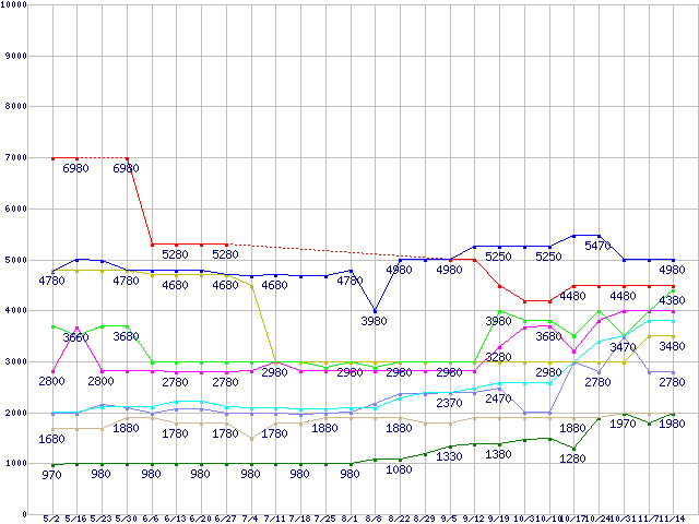 | ※製品名をクリックすると個別のグラフを表示します ※点線部は販売店が確認できなかった、または調査データがないことを示します | |