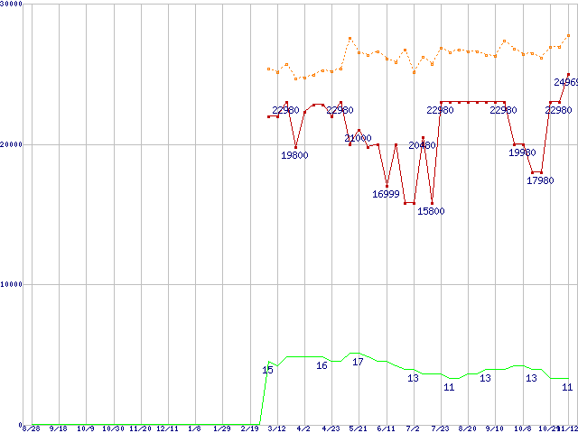 | 2.5インチSSD 128GB (128GB,MLC)の価格推移 |