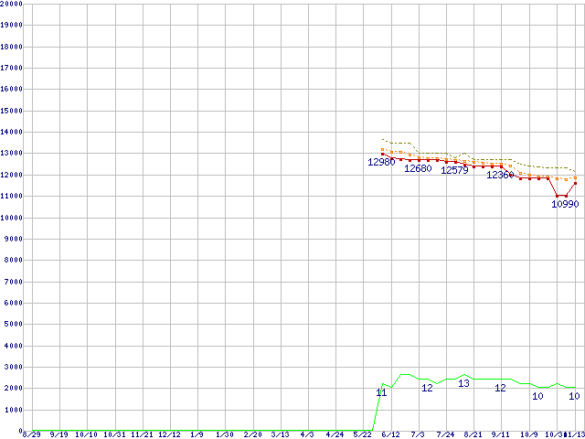 | Phenom II X3 705e (2.5GHz,L2 512KB×3,L3 6MB,TDP 65W)の価格推移 |
