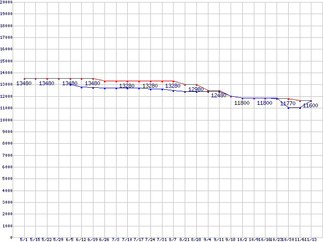 | Socket AM3 (HyperTransport 3.0,Triple Core)の最安値推移 |