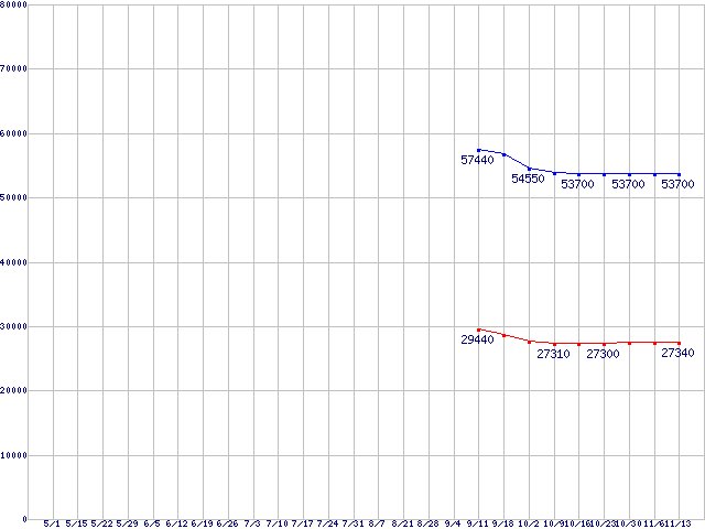 | LGA1156 (L3キャッシュ8MB,Quad Core,Hyper-Threading,TDP 95W)の最安値推移 |