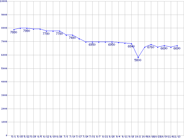 | LGA775 (FSB 800MHz,Dual Core,TDP 65W)の最安値推移 |