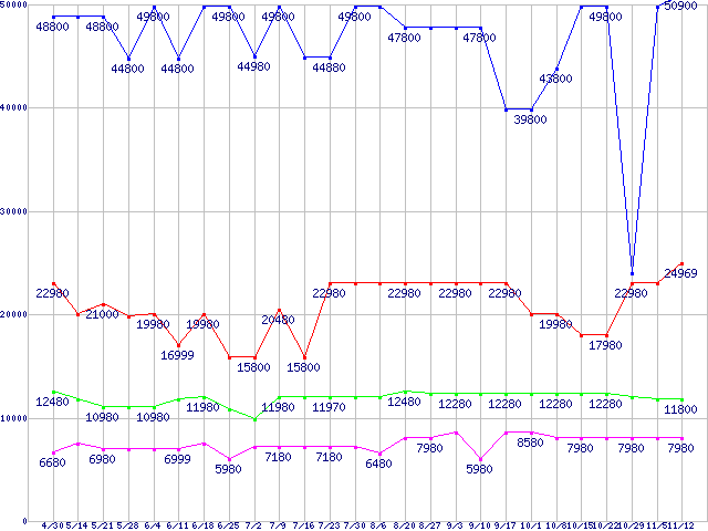 | ※製品名をクリックすると個別のグラフを表示します ※点線部は販売店が確認できなかった、または調査データがないことを示します | |