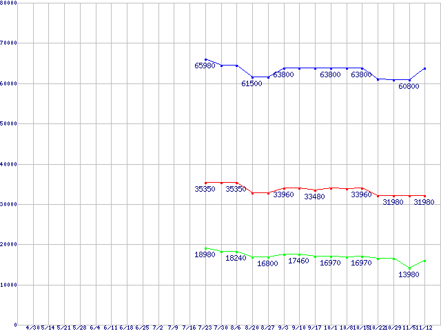 | ※製品名をクリックすると個別のグラフを表示します ※点線部は販売店が確認できなかった、または調査データがないことを示します | |