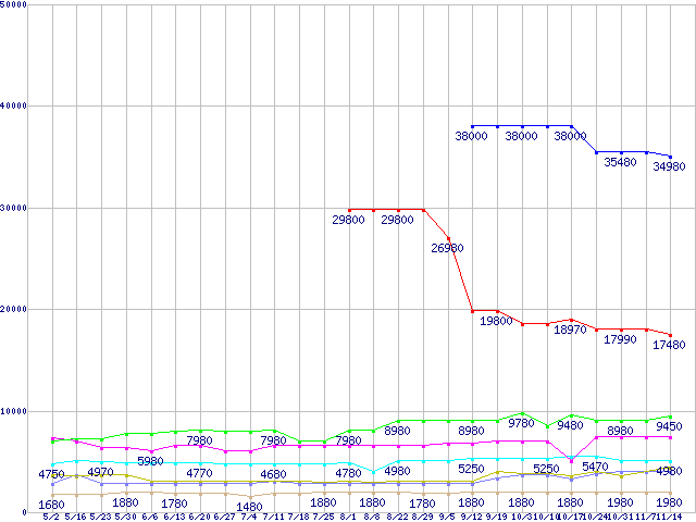 | ※製品名をクリックすると個別のグラフを表示します ※点線部は販売店が確認できなかった、または調査データがないことを示します | |
