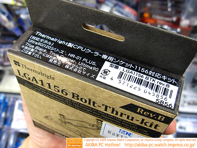 ![]() | AKIBA PC Hotline! 2009年11月14日号 今週見つけた新製品:ファン/冷却関連製品 Thermalright LGA1156 Bolt-Thru-kit Rev.B(LGA1156 BTK rev.B) |