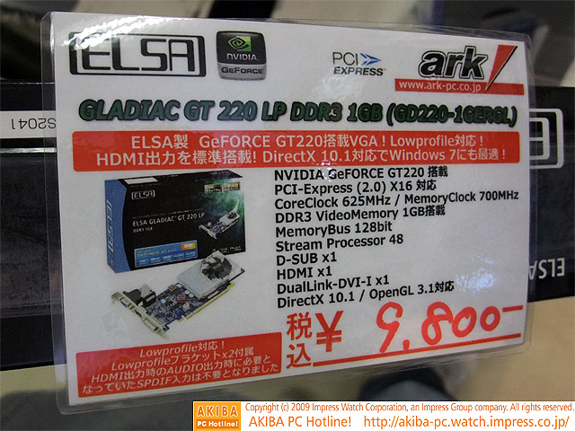 AKIBA PC Hotline! 2009年11月14日号今週見つけた新製品:ビデオカード ELSA GLADIAC GT 220 LP DDR3 1GB(GD220-1GERGL)[記事に戻る]→次の画像
