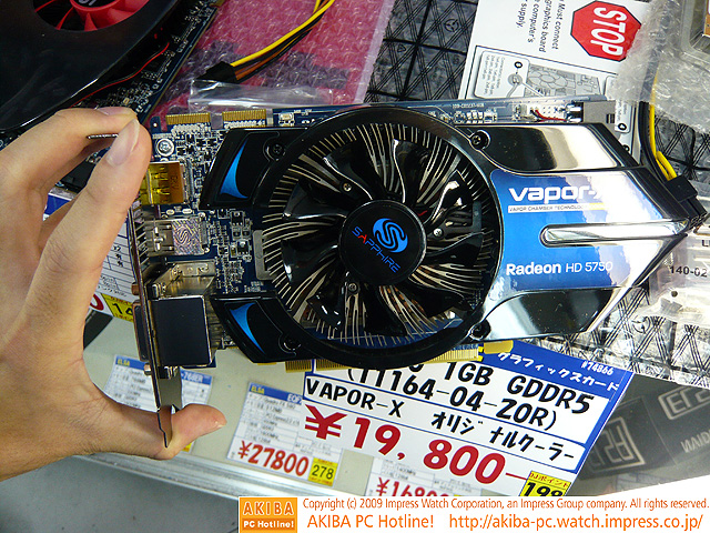 AKIBA PC Hotline! 2009年11月14日号今週見つけた新製品:ビデオカード SAPPHIRE VAPOR-X HD5750 1G GDDR5 PCIE DUAL DVI-I/HDMI/DP[記事に戻る]→次の画像