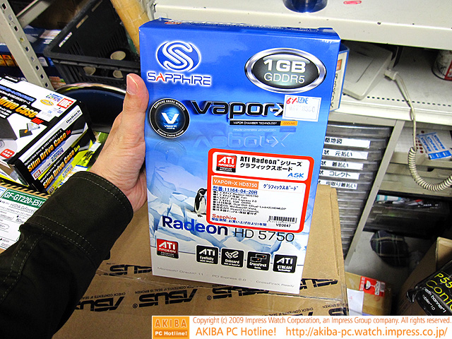 AKIBA PC Hotline! 2009年11月14日号今週見つけた新製品:ビデオカード SAPPHIRE VAPOR-X HD5750 1G GDDR5 PCIE DUAL DVI-I/HDMI/DP前の画像←[記事に戻る]