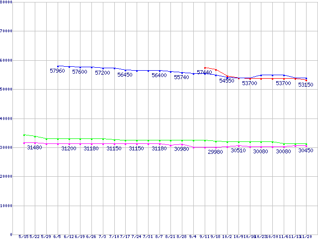 | CPU主要製品(最安値3万円〜6万円未満)の最安値推移 |
