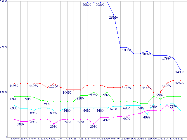| ※製品名をクリックすると個別のグラフを表示します ※点線部は販売店が確認できなかった、または調査データがないことを示します | |