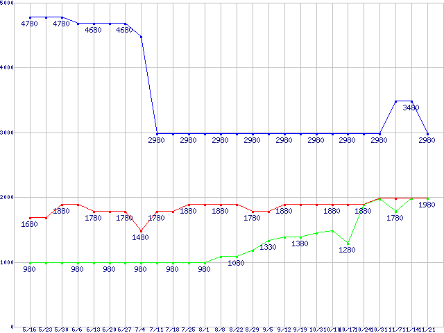 | ※製品名をクリックすると個別のグラフを表示します ※点線部は販売店が確認できなかった、または調査データがないことを示します | |