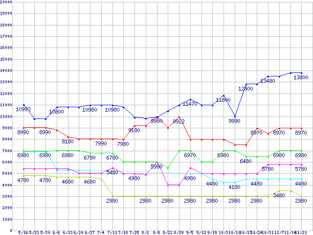 | ※製品名をクリックすると個別のグラフを表示します ※点線部は販売店が確認できなかった、または調査データがないことを示します | |