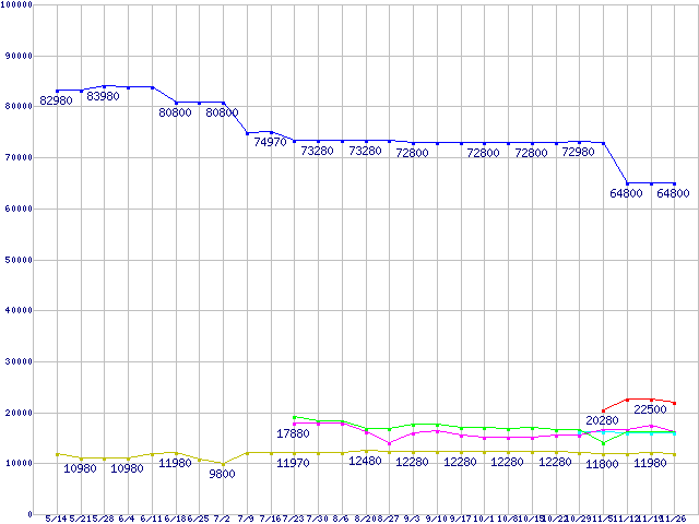 | HDD/SSD 60GB〜80GB未満の最安値推移 |