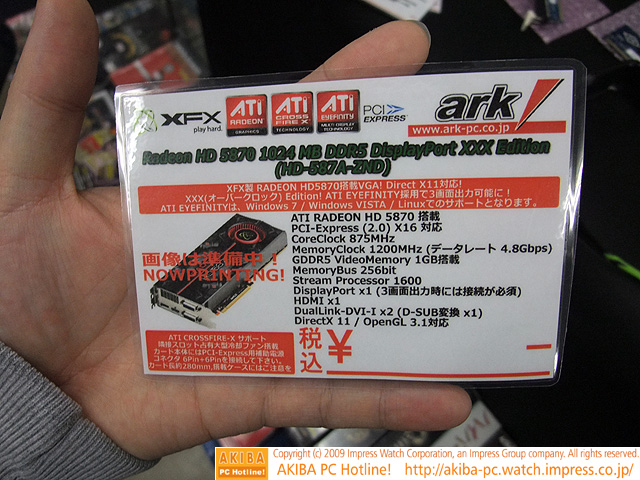 AKIBA PC Hotline! 2009年11月28日号今週見つけた新製品:ビデオカード XFX Radeon HD 5870 XXX EDITION(HD-587-ZND9)前の画像←[記事に戻る]