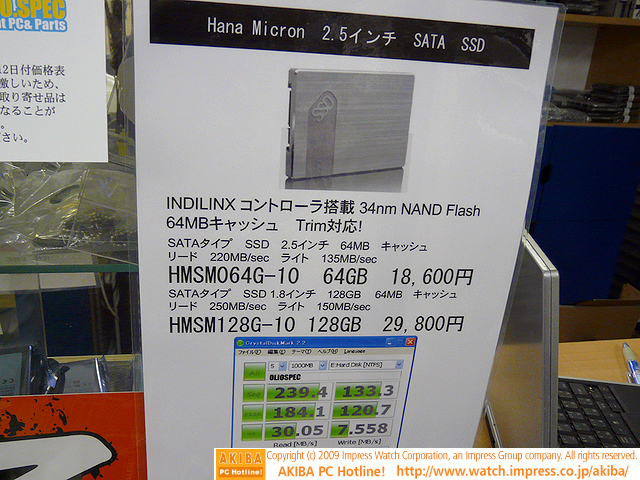 ![]() | AKIBA PC Hotline! 2009年11月28日号 34nmフラッシュ+INDILINXコントローラのSSDがHANA Micronから発売、性能にも変化? 今週見つけた新製品:ハードディスク HANA Micron HMSM064G-10 HANA Micron HMSM128G-10 |