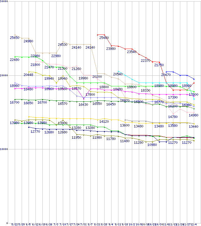 | CPU主要製品(最安値1万円〜2万円未満)の最安値推移 |