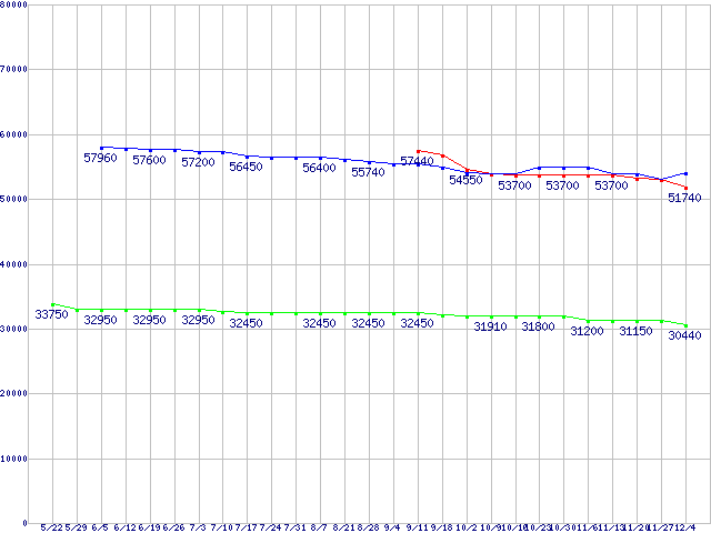| CPU主要製品(最安値3万円〜6万円未満)の最安値推移 |