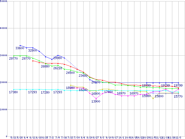 | ※製品名をクリックすると個別のグラフを表示します ※点線部は販売店が確認できなかった、または調査データがないことを示します | |