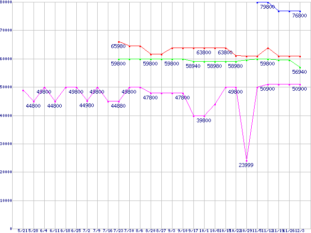 | HDD 250〜300GB未満の最安値推移 |