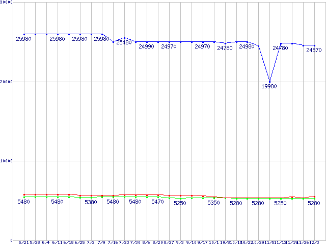 | ※製品名をクリックすると個別のグラフを表示します ※点線部は販売店が確認できなかった、または調査データがないことを示します | |