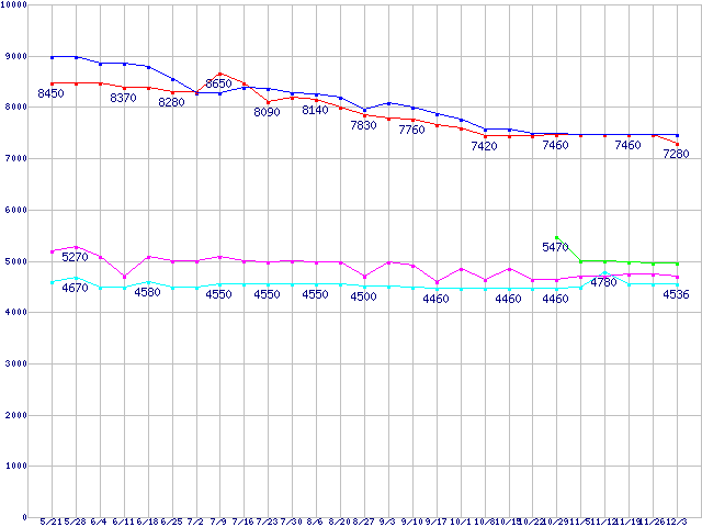 | HDD 500〜600GB未満の最安値推移 |