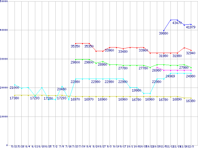 | ※製品名をクリックすると個別のグラフを表示します ※点線部は販売店が確認できなかった、または調査データがないことを示します | |