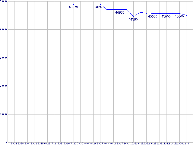 | ※製品名をクリックすると個別のグラフを表示します ※点線部は販売店が確認できなかった、または調査データがないことを示します |
