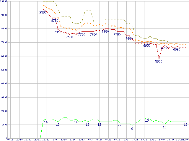 | Pentium Dual-Core E5300 (2.6GHz,L2 2MB)の価格推移 |