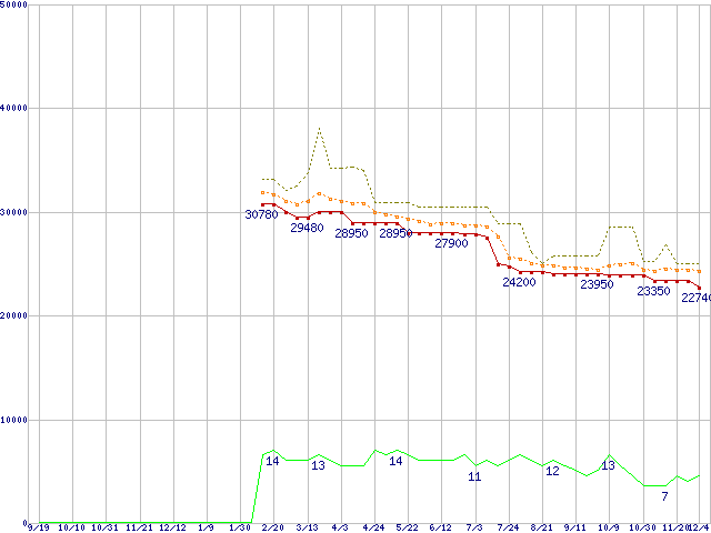 | Core 2 Quad Q9400S (2.66GHz,L2 3MB×2)の価格推移 |