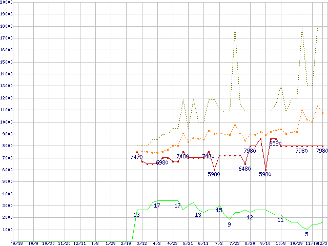 | 2.5インチSSD 32GB (32GB,MLC)の価格推移 |