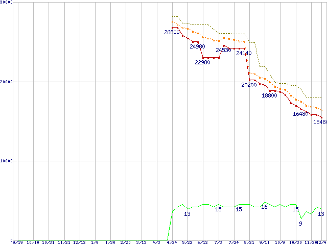 | Phenom II X4 955 Black Edition (3.2GHz,L2 512KB×4,L3 6MB,TDP 125W)の価格推移 |