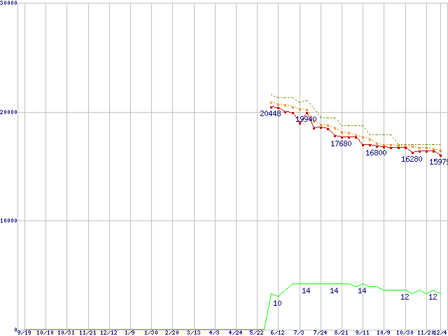 | Phenom II X4 905e (2.5GHz,L2 512KB×4,L3 6MB,TDP 65W)の価格推移 |