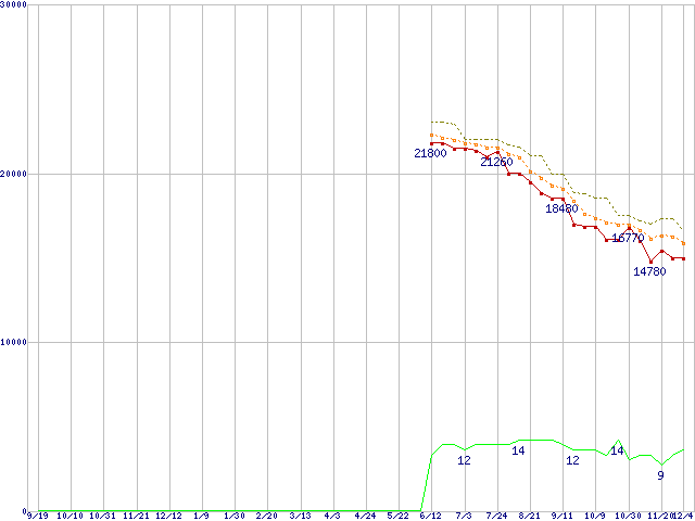 | Phenom II X4 945 (3.0GHz,L2 512KB×4,L3 6MB,TDP 95W)の価格推移 |