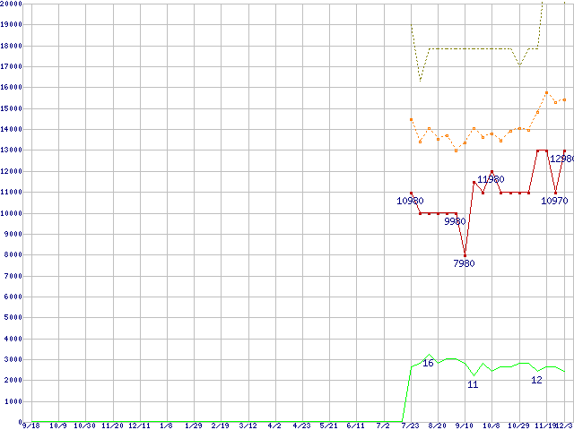 | 2.5インチSSD(INDILINX製コントローラ) 32GB (32GB,MLC)の価格推移 |