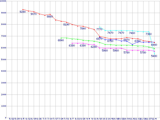 | ※製品名をクリックすると個別のグラフを表示します ※点線部は販売店が確認できなかった、または調査データがないことを示します | |