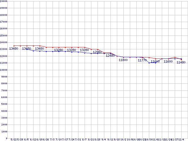 | Socket AM3 (HyperTransport 3.0,Triple Core)の最安値推移 |