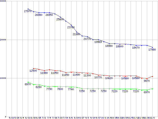 | Barracuda LP (5900rpm,3Gb/s)の最安値推移 |