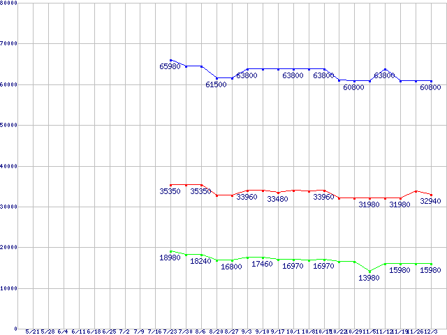 | ※製品名をクリックすると個別のグラフを表示します ※点線部は販売店が確認できなかった、または調査データがないことを示します | |