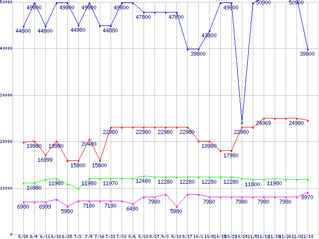 | ※製品名をクリックすると個別のグラフを表示します ※点線部は販売店が確認できなかった、または調査データがないことを示します | |