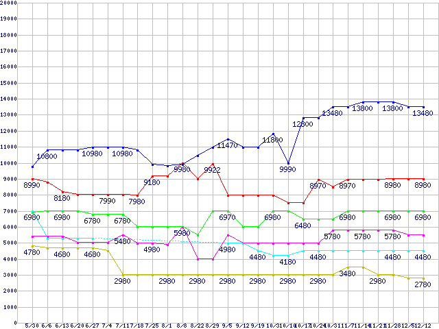 | ※製品名をクリックすると個別のグラフを表示します ※点線部は販売店が確認できなかった、または調査データがないことを示します | |