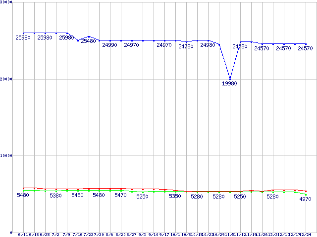 | HDD 300〜400GB未満の最安値推移 |